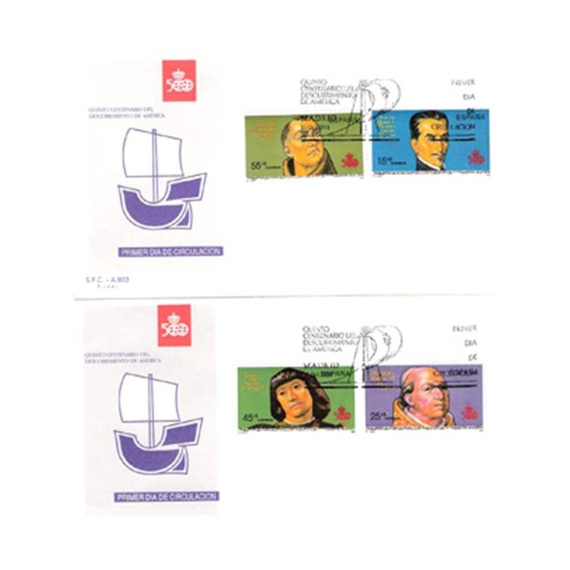 Motivos: 3137, Gómez Suárez de Figueroa, conocido como el inca Garcilaso de la Vega; 3138, Alejandro VI; 3139, Luis de Santángel; 3140, Fray Toribio de Paredes, también llamado de Benavente y, posteriormente, de Motolinía. Diseños de Vicente Domínguez Urosa.