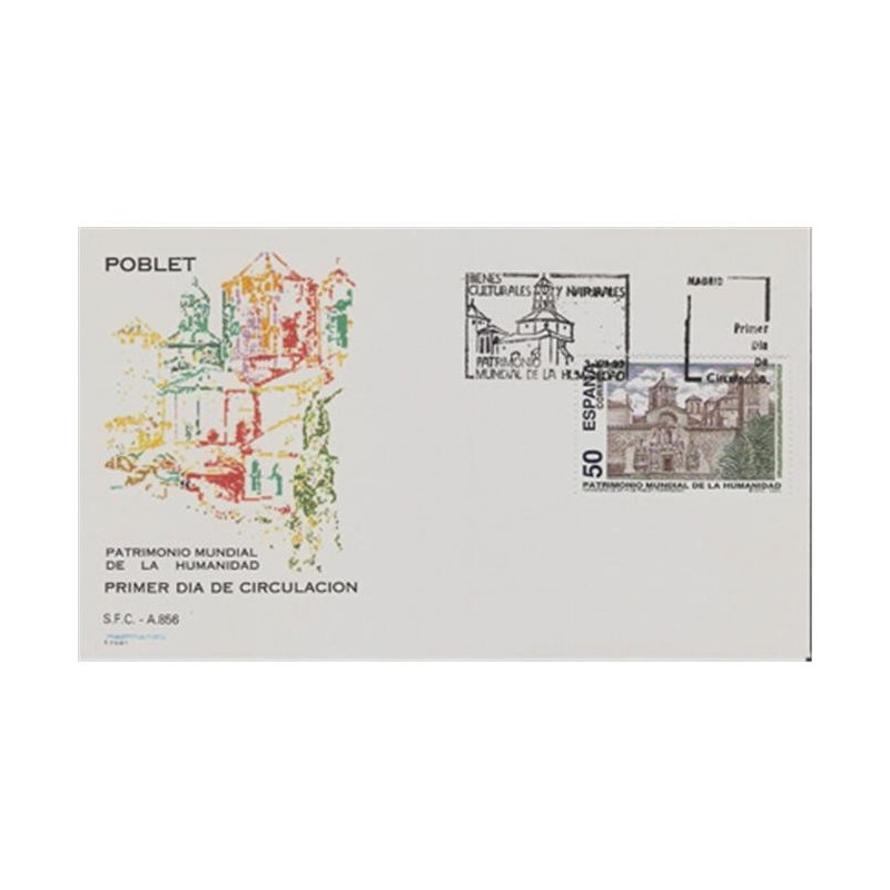 1993 50 PESETAS MONASTERIO DE SANTA MARIA DE POBLET.TARRAGONA Sobre Primer Dia