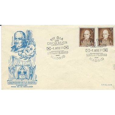 1951 1 Ago. 0,05 Pesetas - Matasello Primer Dia Calderón de la Barca