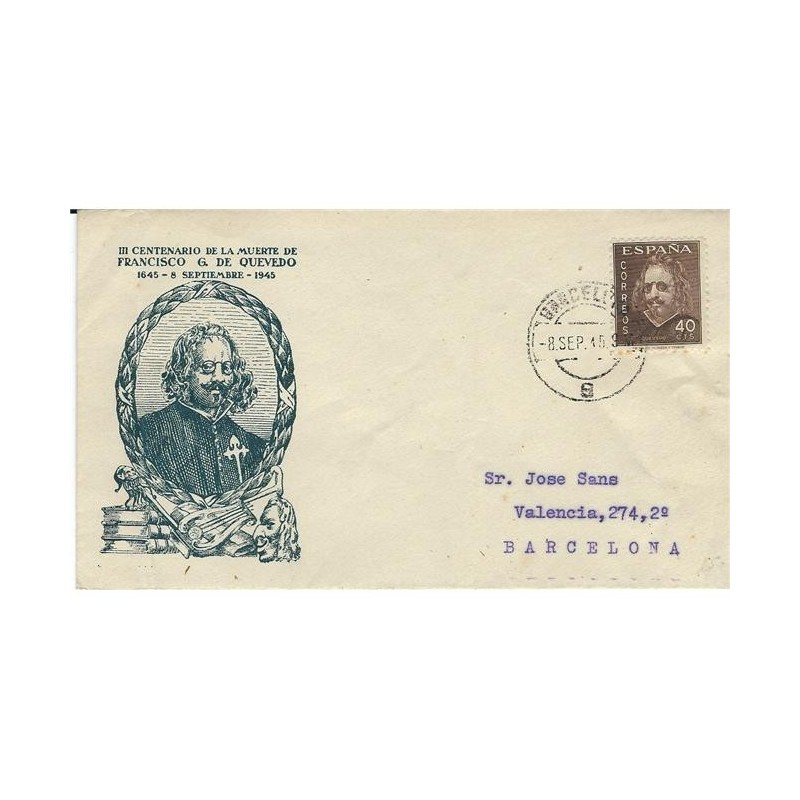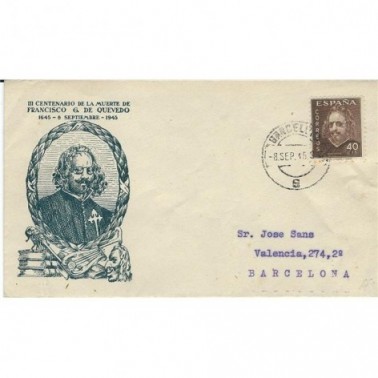 1945 8 Sep. 40 CENTIMOS DE PESETA III CENTENARIO DE LA MUERTE DE QUEVEDO