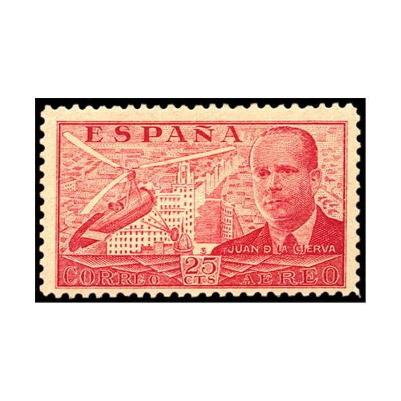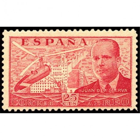 El diseño reproduce el retrato de don Juan de la Cierva y Codorníu, con el autogiro de su invención sobre la Gran Via de Madrid.