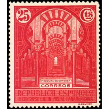 Los diseños de los sellos de correo ordinario corresponden a fuente del Patio de Leones de la Alhambra de Granada (5 y 40 céntimos), interior de la mezquita de Córdoba (10, 25 y 50 céntimos), puente de Alcántara de Toledo (15 céntimos y 1 peseta), retrato de busto de don Francisco García Santos, promotor de la Unión Postal Panamericana (30 céntimos) y vista de la Puerta del Sol, en Madrid, el 14 de abril de 1931 (4 y 10 pesetas), éste último realizado por José López Sánchez-Toda. Los de correo aéreo reproducen una vista de Madrid desde el oeste (5, 10 y 15 céntimos), la fuente de Cibeles en Madrid, con el Palacio de Comunicaciones al fondo (50 céntimos y 1 peseta) y una vista de la calle de Alcalá de Madrid (4 pesetas); estos diseños fueron realizados por José López Sánchez-Toda, por sugerencia de don Manuel Gálvez Rodríguez.