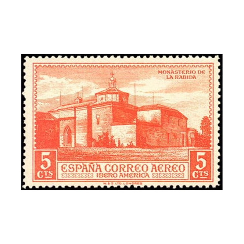 Los diseños de los sellos de correo aéreo para América reproducen el monasterio de La Rábida (5 y 10 céntimos), retrato de Colón de autor desconocido (25 y 50 céntimos y 1 peseta) y composición con los retratos de los tres navegantes (4 y 10 pesetas).
