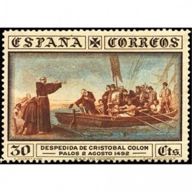 Los diseños de los sellos de correo ordinario corresponden a la nao "Santa María" de proa (1, 2, 5 y 15 céntimos), la "Santa María" de popa (2, 5, 10 y 20 céntimos), la flota de Colón (25 y 40 céntimos y 1 peseta), la salida de Colón del puerto de Palos según un cuadro de Antonio Gisbert (30 y 50 céntimos) y el primer desembarco de Colón en el Nuevo Mundo según un cuadro de Dióscoro Puebla (4 y 10 pesetas). Para el sello de correo urgente se utilizó el de 20 céntimos de correo ordinario con una habilitación alusiva.