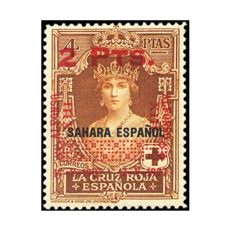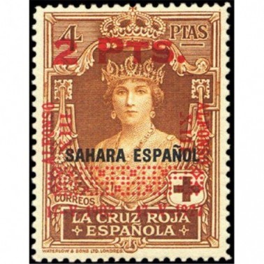 Sellos de 4 y 10 pesetas de la emisión de la Cruz Roja de 1926 para las oficinas españolas de Marruecos(M), Sahara (S), Tanger (T), Guinea (G) y Cabo Jubi (CJ), habilitados para España con o sin nuevo valor.