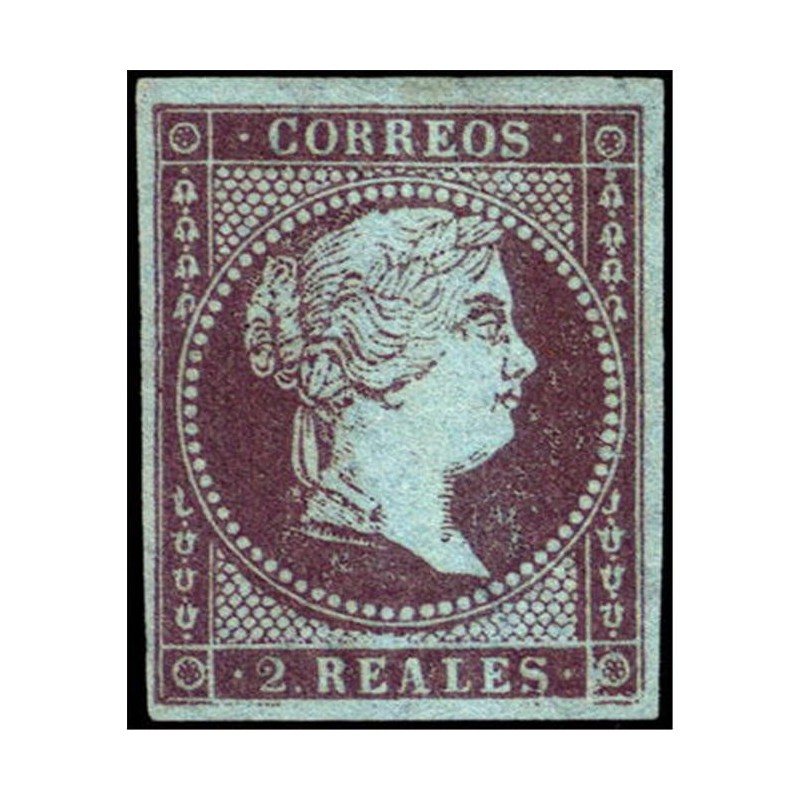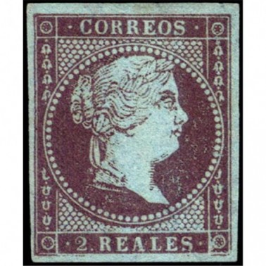 1855 2 REALES ISABEL II Papel azulado.Filigrana a lazos