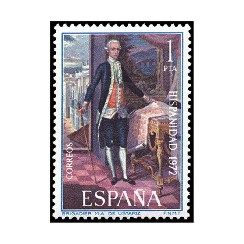 1972 1 PESETA BRIGADIER M.A.DE USTARIZ POR JOSE CAMPECHE Sello usado