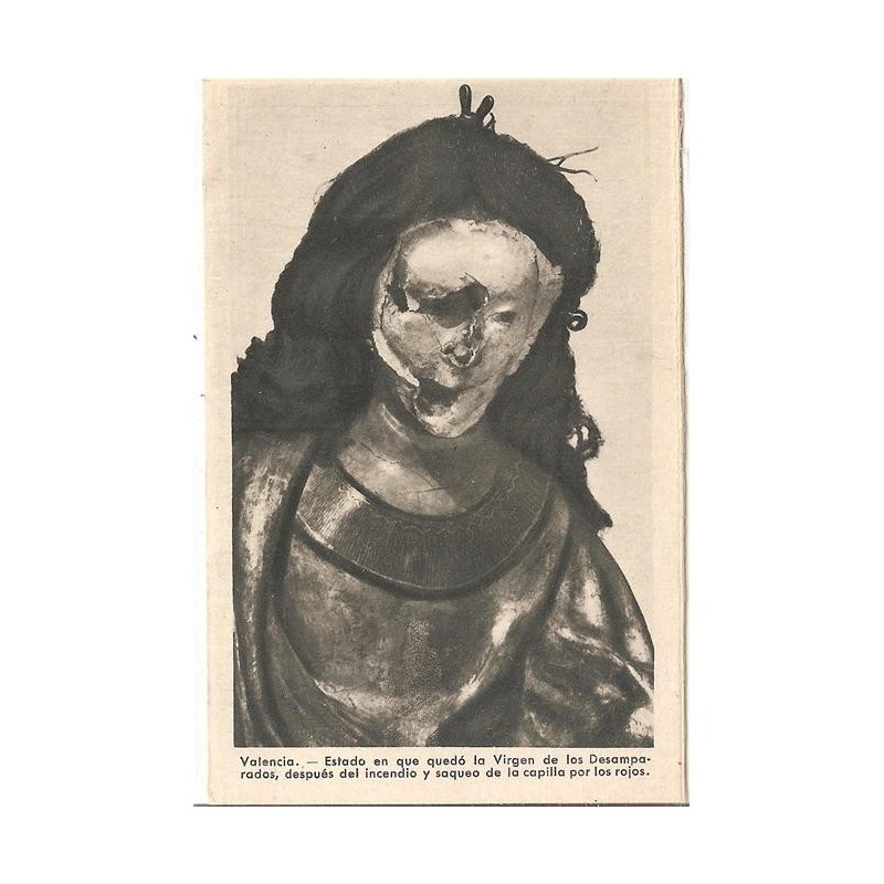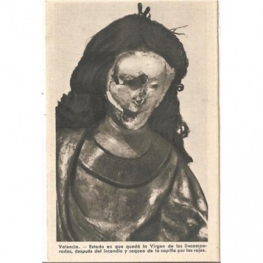 ESTADO EN QUE QUEDO LA VIRGEN DE LOS DESAMPARADOS,DESPUES DEL INCENDIO Y SQUEO DE LA CAPILLA POR LOS ROJOS
